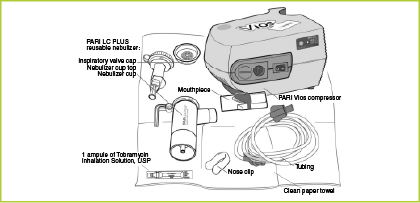 Tobramycin inhalation solution is used only in a PARI LC PLUS re-usable Nebulizer connected to a PARI LC PLUS Vios air compressor. Make sure you know how to use your nebulizer machine before you use it to breathe in tobramycin inhalation solution.